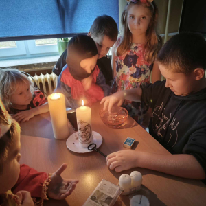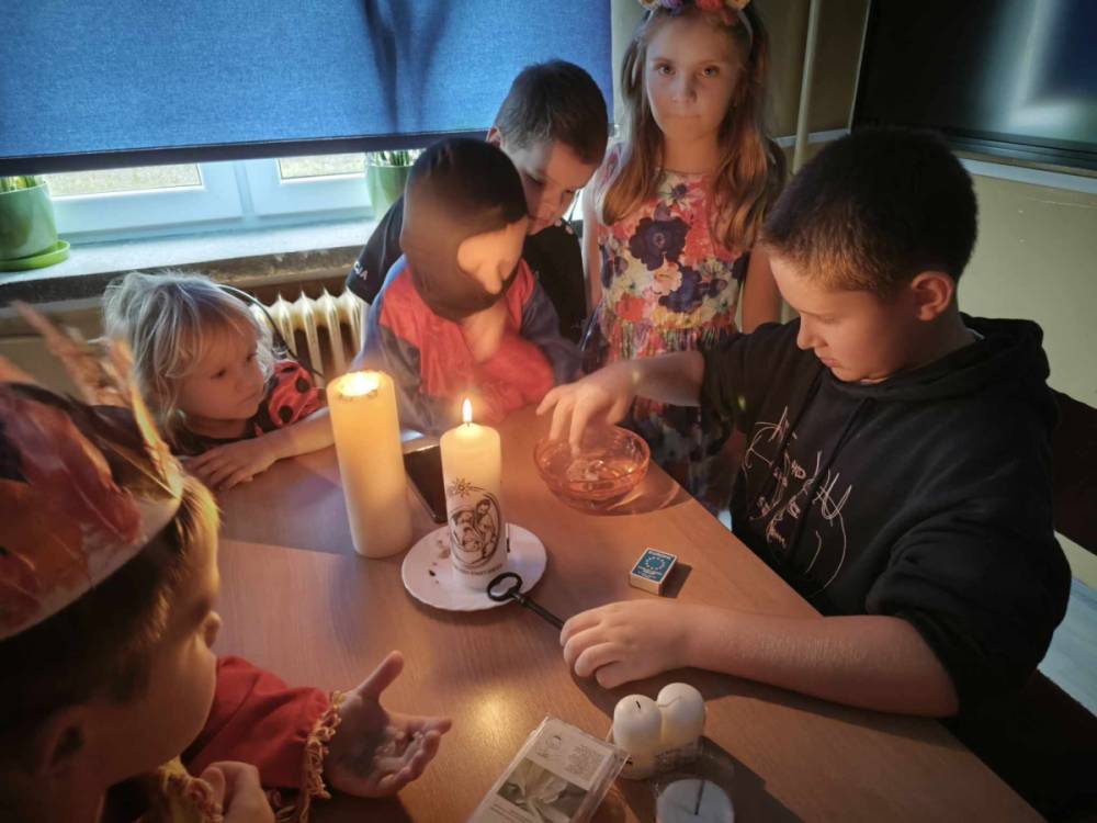 28 listopada w naszej szkole zapanowała magiczna atmosfera, bowiem świętowaliśmy Andrzejki. Wigilia Św. Andrzeja, to czas radosnych zabaw i wróżb. Dzieci, chcąc poznać swoją przyszłość ustawiały buciki, przekuwały serduszka z imionami, losowały przepowiednie itp. Wróżby, przygotowane przez uczniów klas starszych przeplatane były tańcami oraz zabawami przy skocznej muzyce. Nie zabrakło także słodkiego poczęstunku. Przedszkolaki z tej okazji wykonały pracę plastyczną, wizerunek Św. Andrzeja. To był dzień radosny, pełen doskonałego humoru.