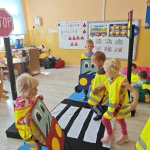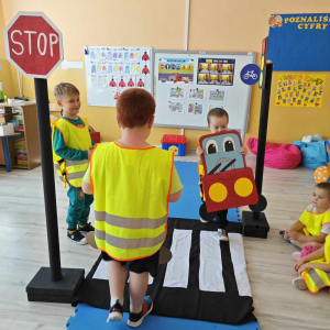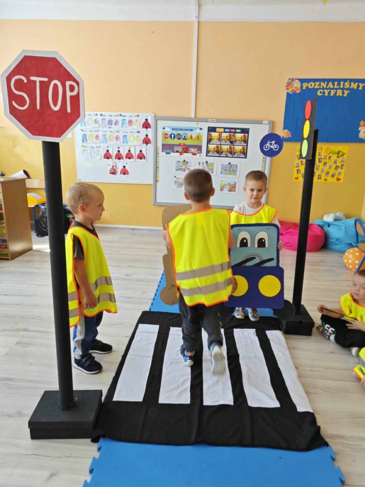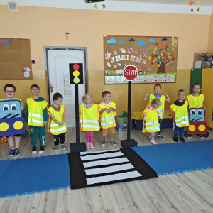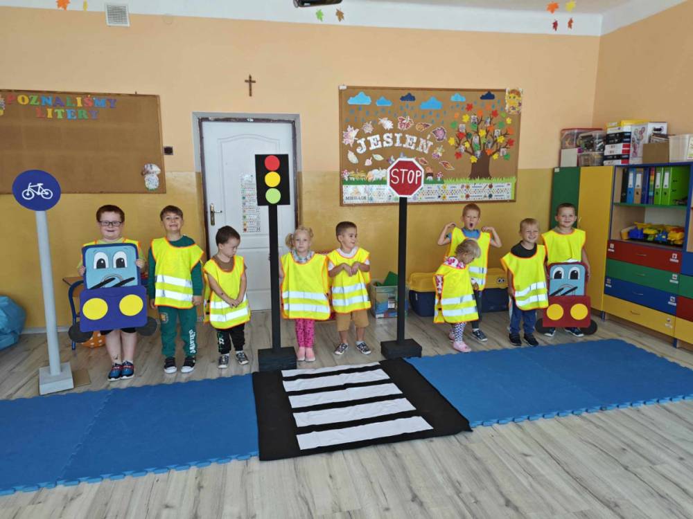 Ważnym elementem wrześniowego cyklu zajęć jest przypomnienie uczniom zasad bezpiecznego poruszania się po drodze. Nasi wychowankowie utrwalili znajomość zasad bezpiecznego poruszania się po chodniku, poboczu i przy przechodzeniu przez jezdnię, a także jak istotną rolę w bezpieczeństwie odgrywają elementy odblaskowe. Dodatkowo najmłodsi uczniowie utrwalili znajomość numerów alarmowych.