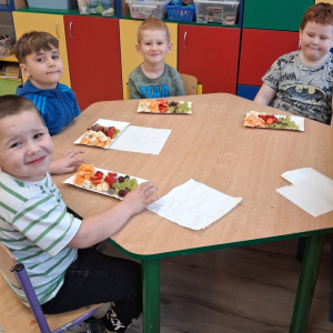 Spotkanie w ramach ogólnopolskiego projektu "Z Kicią Kocią maluchy zmieniają się w zuchy". Tym razem inspiracja książką "Kicia Kocia gotuje". Wspólne czytanie, uwrażliwienie dzieci na bezpieczeństwo w kuchni i higienę mycia rąk oraz wspólne wykonanie i degustacja zdrowych owocowych szaszłyków. Serdecznie dziękujemy Pani Joannie Gogół za kolejne ciekawe spotkanie.