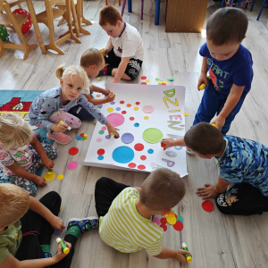 16 września w naszej szkole przedszkolaki z oddziału przedszkolnego obchodziły Międzynarodowy Dzień Kropki. Poznały genezę tego święta, jak to zwyczajna, mała kropka odmieniła życie małej dziewczynki o imieniu Vashti. Rozmawiały o swoich talentach i zainteresowaniach. Wykonały plakat oraz prace plastyczną. Zaś na zajęciach kulinarnych upiekły babeczki w kropeczki.