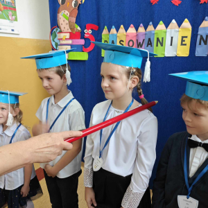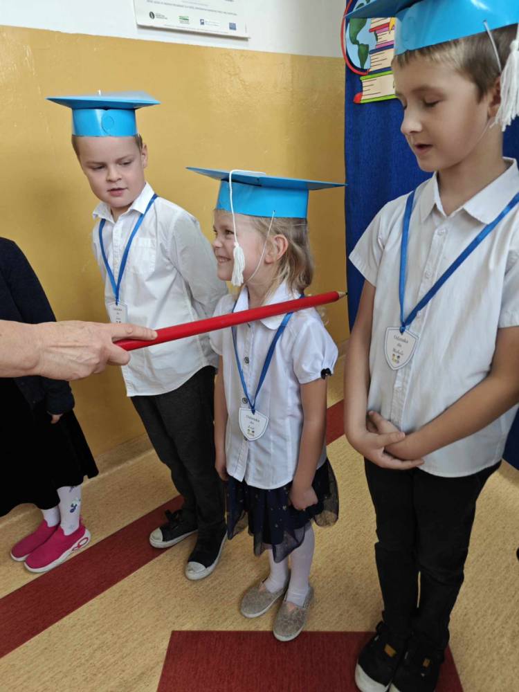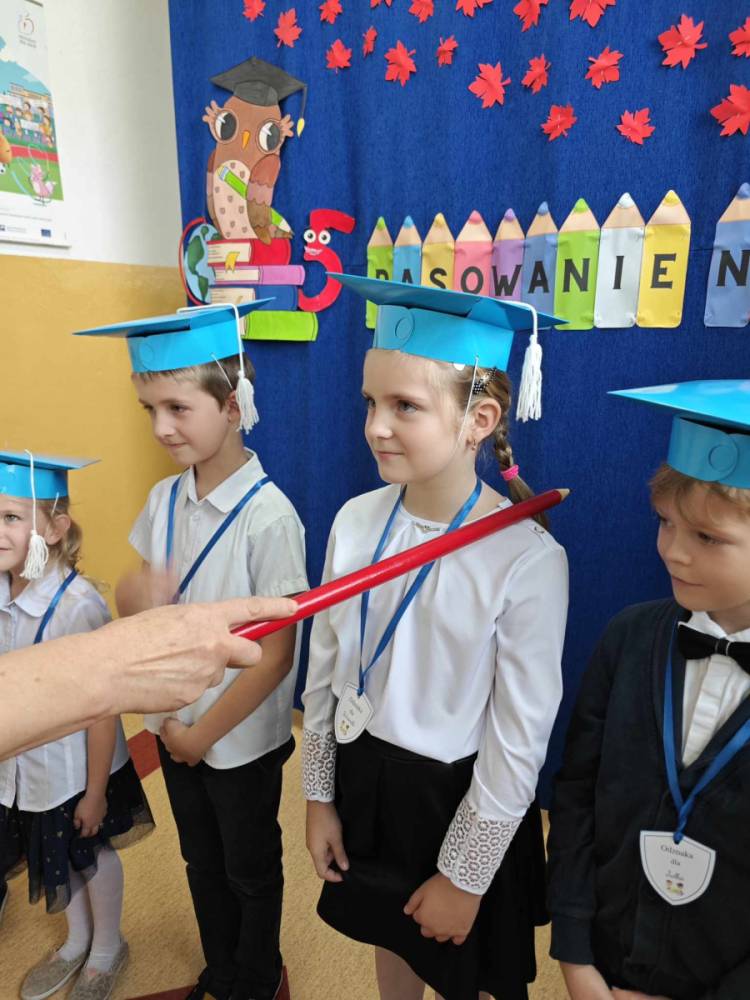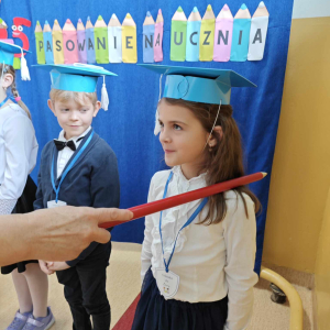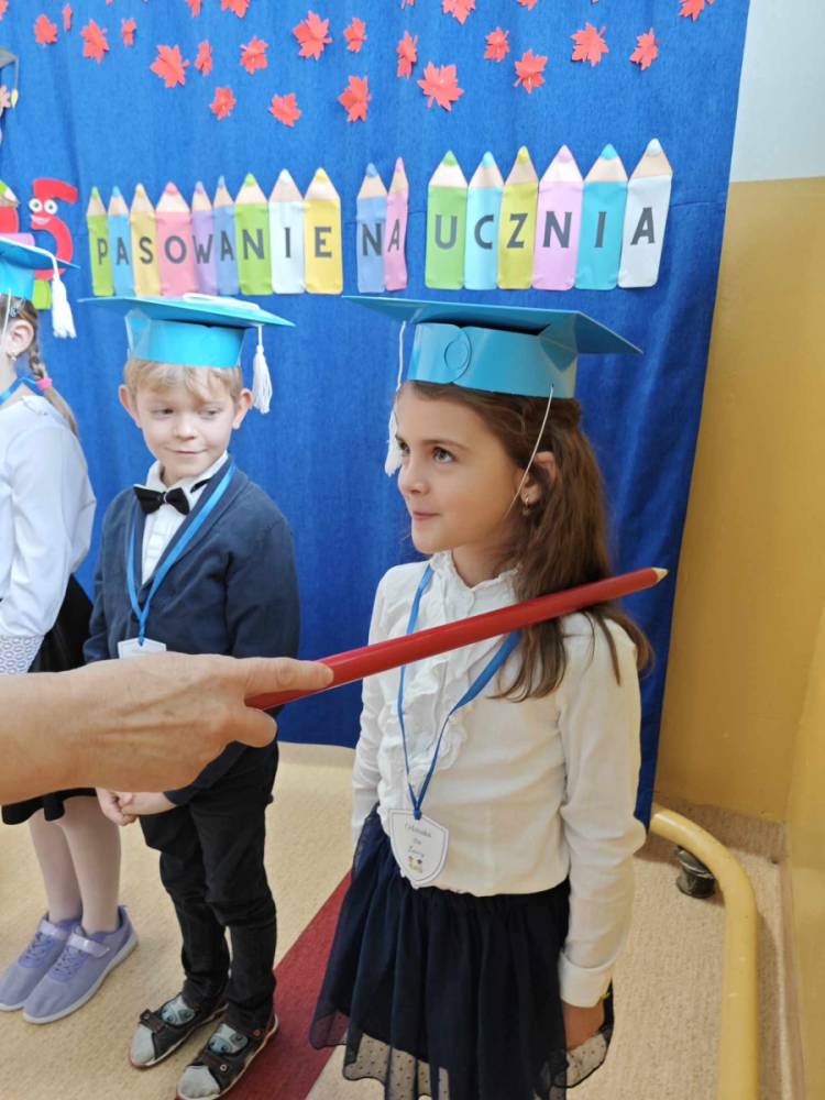 8 listopada odbyła się w naszej szkole bardzo ważna uroczystość, Pasowanie na Ucznia. Jest to, szczególny dzień, który na zawsze pozostanie w pamięci uczniów klasy pierwszej, bowiem zostali oficjalnie przyjęci do społeczności szkolnej. Podczas części artystycznej pod kierunkiem pani wychowawczyni Urszuli Skrzypczak pokazali, że potrafią pięknie śpiewać oraz recytować wiersze. Następnie pani dyrektor Bożena Suchorab wielkim ołówkiem dokonała uroczystego aktu ślubowania. Po części oficjalniej była też chwila na wspólne, słodkie świętowanie w gronie rodziców.