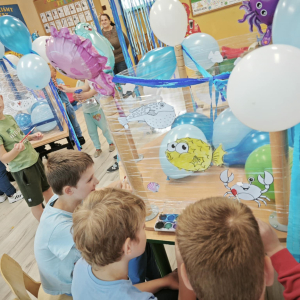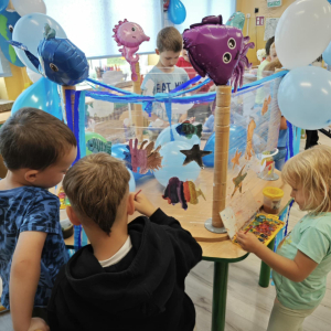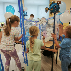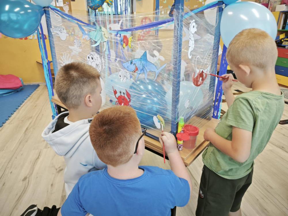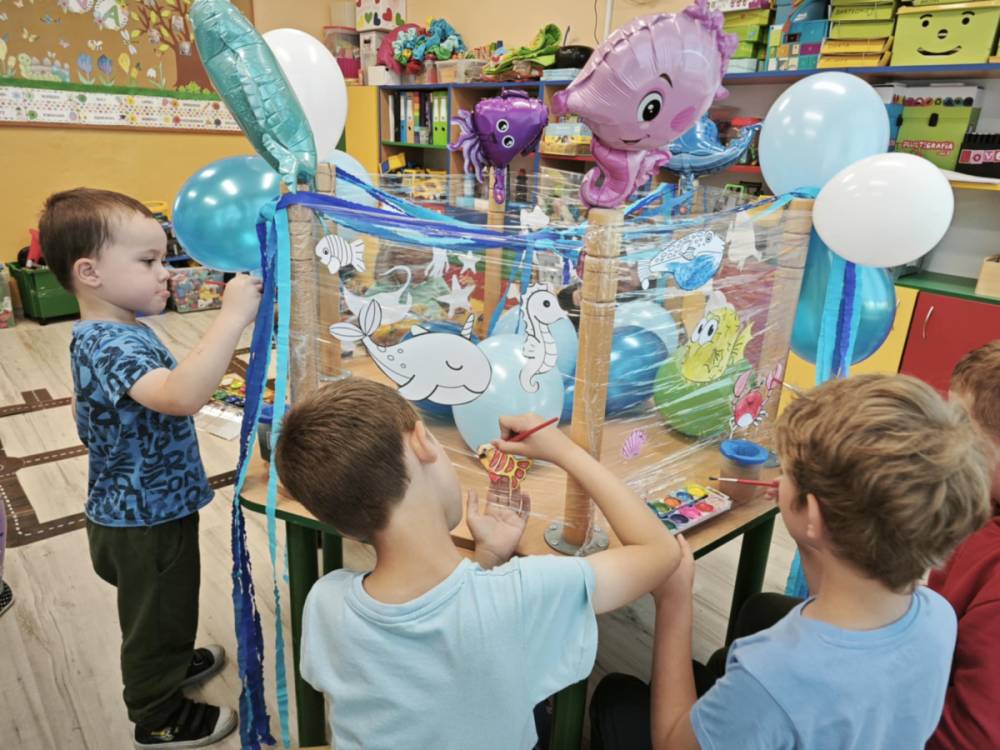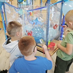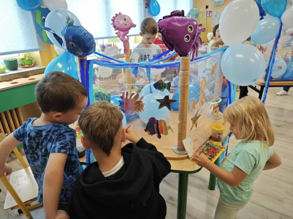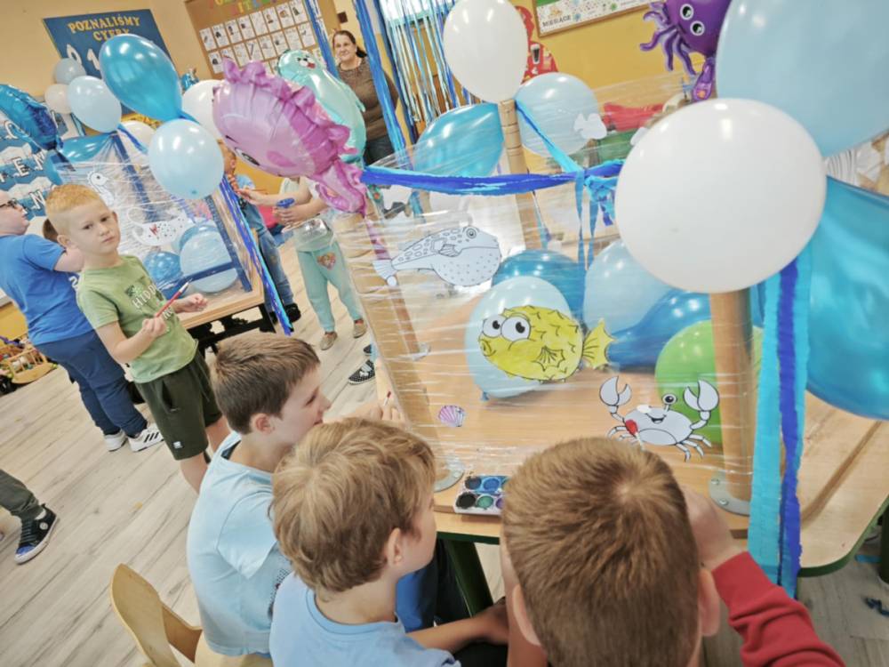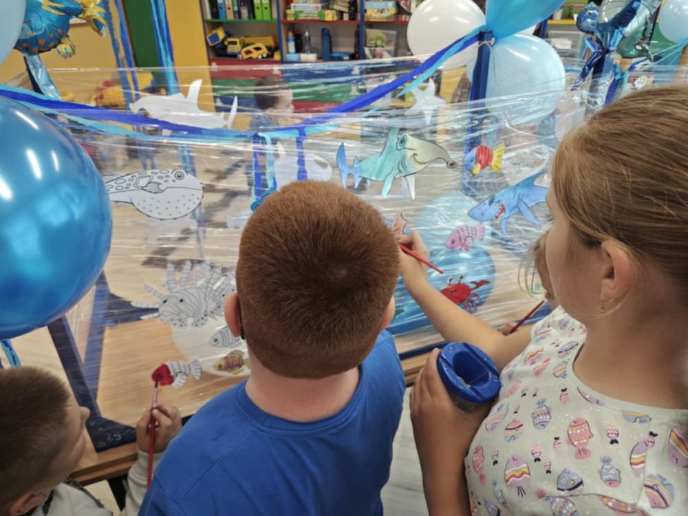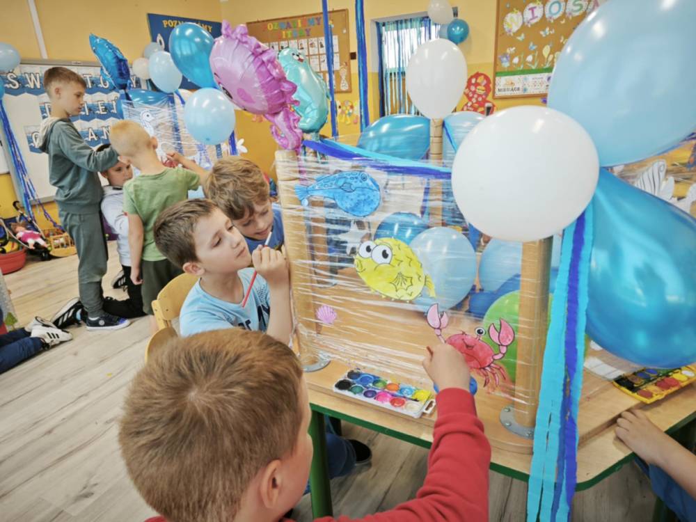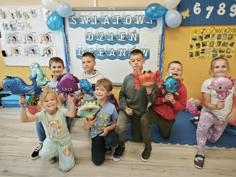 Ocean to bogaty i piękny podwodny świat, dlatego trzeba go chronić! Podczas obchodów Święta Oceanów nasze przedszkolaki oraz uczniowie klas 1-3 dowiedzieli się, jakie niesamowite i piękne stworzenia żyją w morskich głębinach oraz co stanowi dla nich zagrożenie. Następnie po części edukacyjnej odbyły się zajęcia plastyczne, wszystkie dzieci zabrały się do malowania podwodnych stworzeń. Tego dnia nie zabrakło oczywiście zajęć kulinarnych, podczas których przedszkolaki upiekły pyszne muffinki.