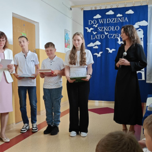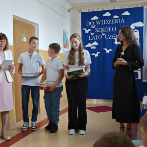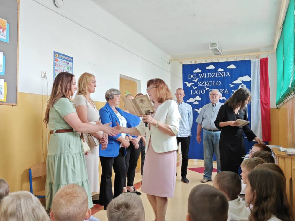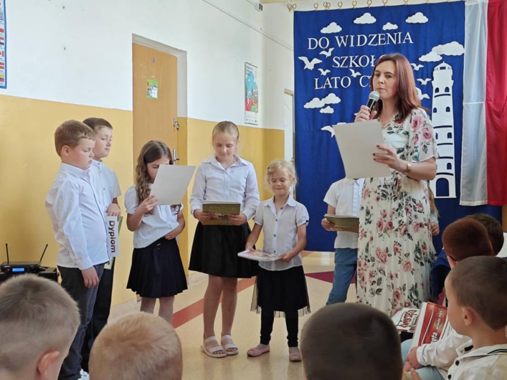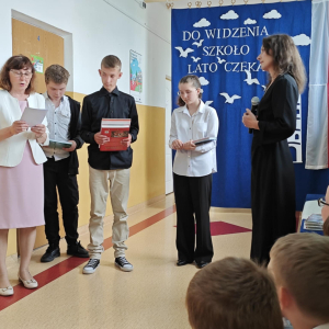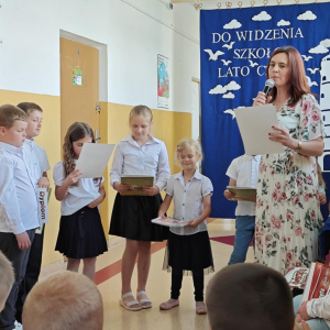 Zakończenie roku szkolnego to bardzo ważny moment w życiu każdej szkoły, czas podsumowań, refleksji, pożegnań jak również radości z nadchodzących wakacji. W tym uroczystym dniu spotkaliśmy się wspólnie, uczniowie, rodzice, nauczyciele oraz pracownicy szkoły, by razem podziękować za miesiące nauki i pracy. Podczas uroczystości pani dyrektor wyróżniła tych, którzy szczególnie się angażowali i osiągali wysokie wyniki w nauce. Oczywiście nie zabrakło części artystycznej, przygotowanej przez naszych najmłodszych uczniów, którzy wierszem i piosenką wprowadzili nas w wakacyjny klimat. Zakończenie roku szkolnego to również czas pożegnania z uczniami klasy 8, którzy wkraczają w nowy etap swojej edukacyjnej drogi. Życzymy im odwagi, wytrwałości, sukcesów i spełniania marzeń. Dziękujemy całej społeczności szkolnej za ten wspólnie spędzony rok. Życzymy wszystkim słonecznych i bezpiecznych wakacji! Do zobaczenia we wrześniu!