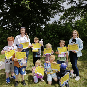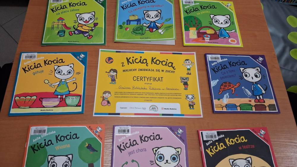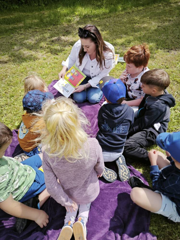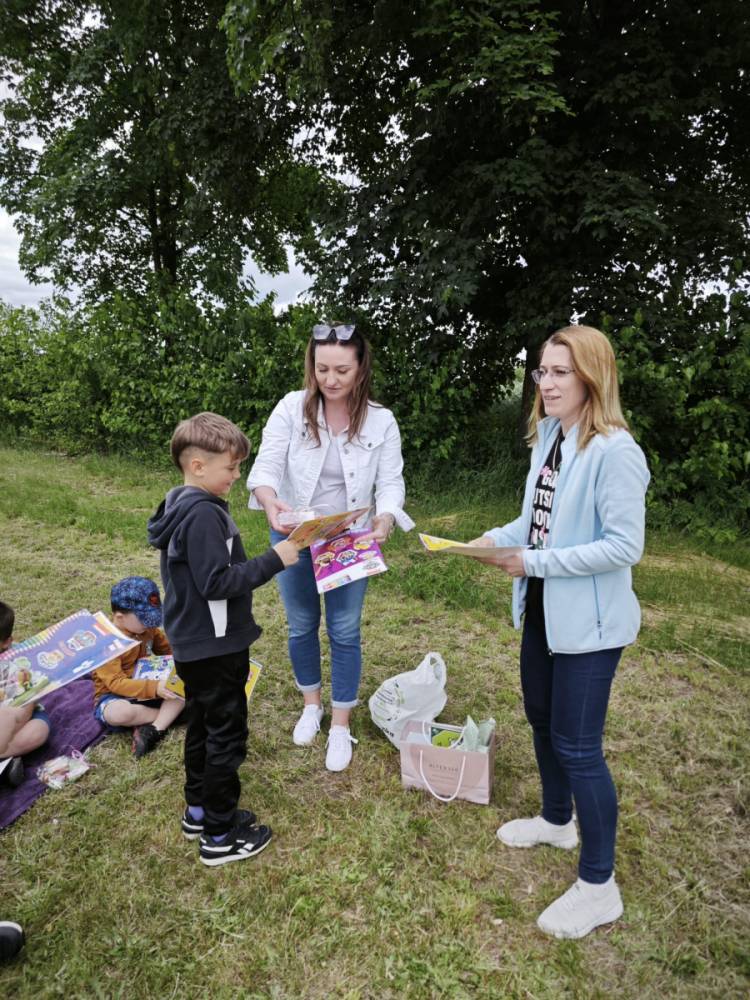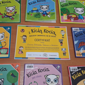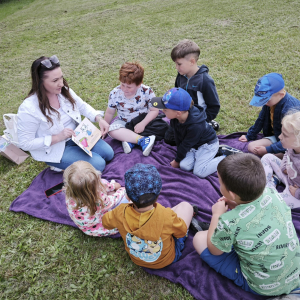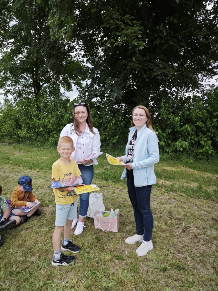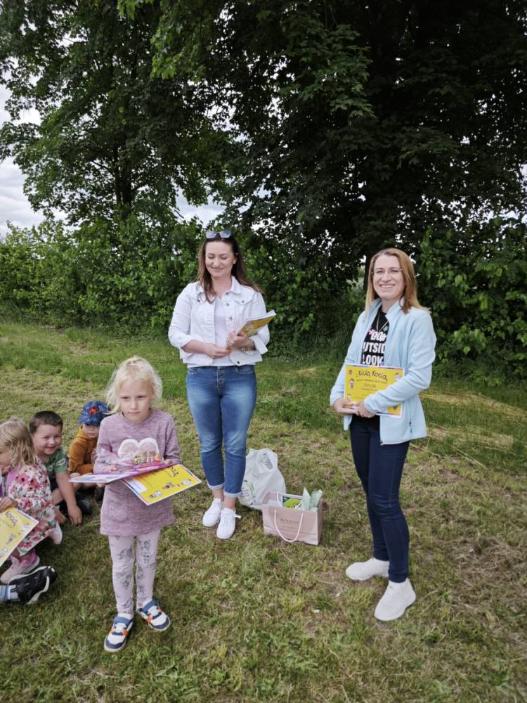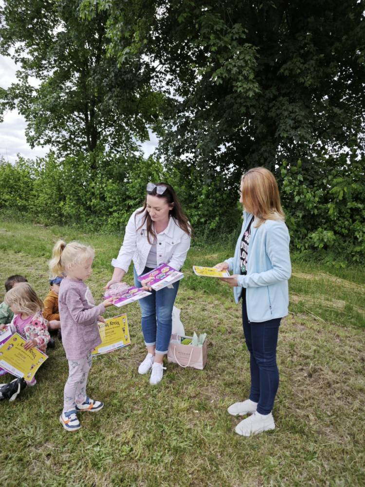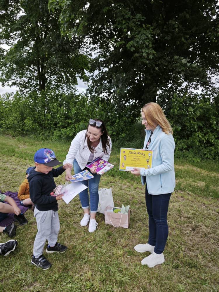 12 czerwca w oddziale przedszkolnym odbyło się niecodzienne zakończenie ogólnopolskiego projektu „Z Kicią Kocią maluchy zmienią się w zuchy” realizowanego we współpracy z panią Joanną Gogół z Miejsko Gminnej Biblioteki Publicznej w Siemieniu. Celem projektu było propagowanie czytelnictwa wśród naszych najmłodszych. Ostatnie spotkanie zorganizowane zostało w plenerze, w miłej i radosnej atmosferze odbyły się zajęcia głośnego czytania, wręczenia dzieciom dyplomów i upominków oraz wspólnych zabaw na świeżym powietrzu.